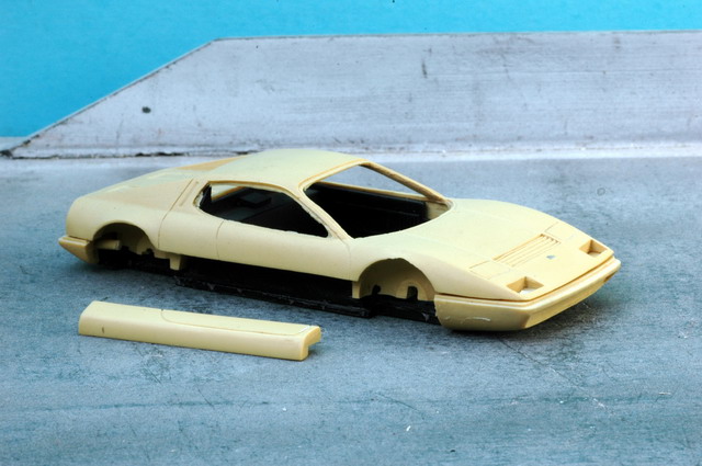 Tous les bas de caisse et pare-chocs étaient à part, afin de faciliter la mise en peinture, généralement en deux tons. Et par rapport à une AMR, elle fait 4 mm de moins en largeur, malgré le fait que j'ai quand même exagéré, comme d'hab'...
