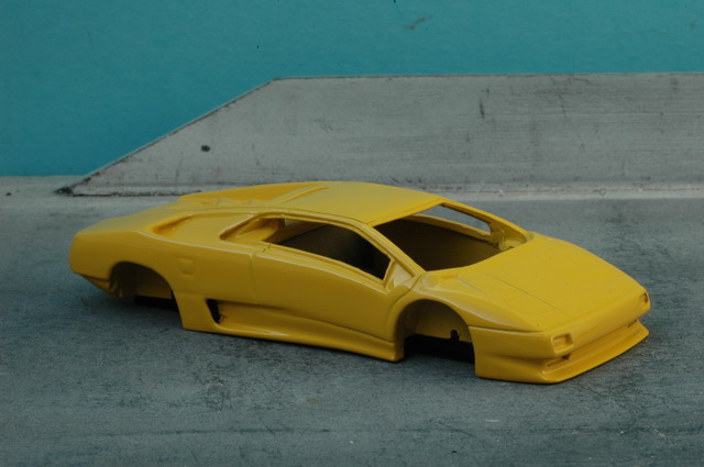 A son arrivée en Europe, le concessionnaire Suisse voulut un modèle rapidement: Nous allâmes à Genève faire des photos, mesures, etc... Je fis le master rapidement, en constatant avec amusement que le profil de caisse correspondait pile-poil à celui d'une Testarossa. Qu'est ce qui fit avorter le projet, exactement, je n'en sais trop rien?